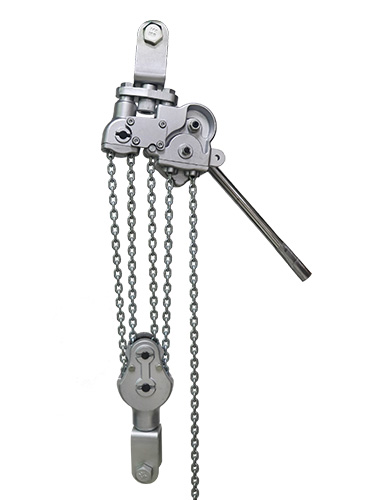 主體采用高強度鎂鋁合金材料,鏈條采用高強度特制合金鋼材料。使用方便、安全可靠;結構合理、造型美觀;維修簡單、經久耐用;手扳力小、工作效率高;體積特小、重量特輕、攜帶方便。